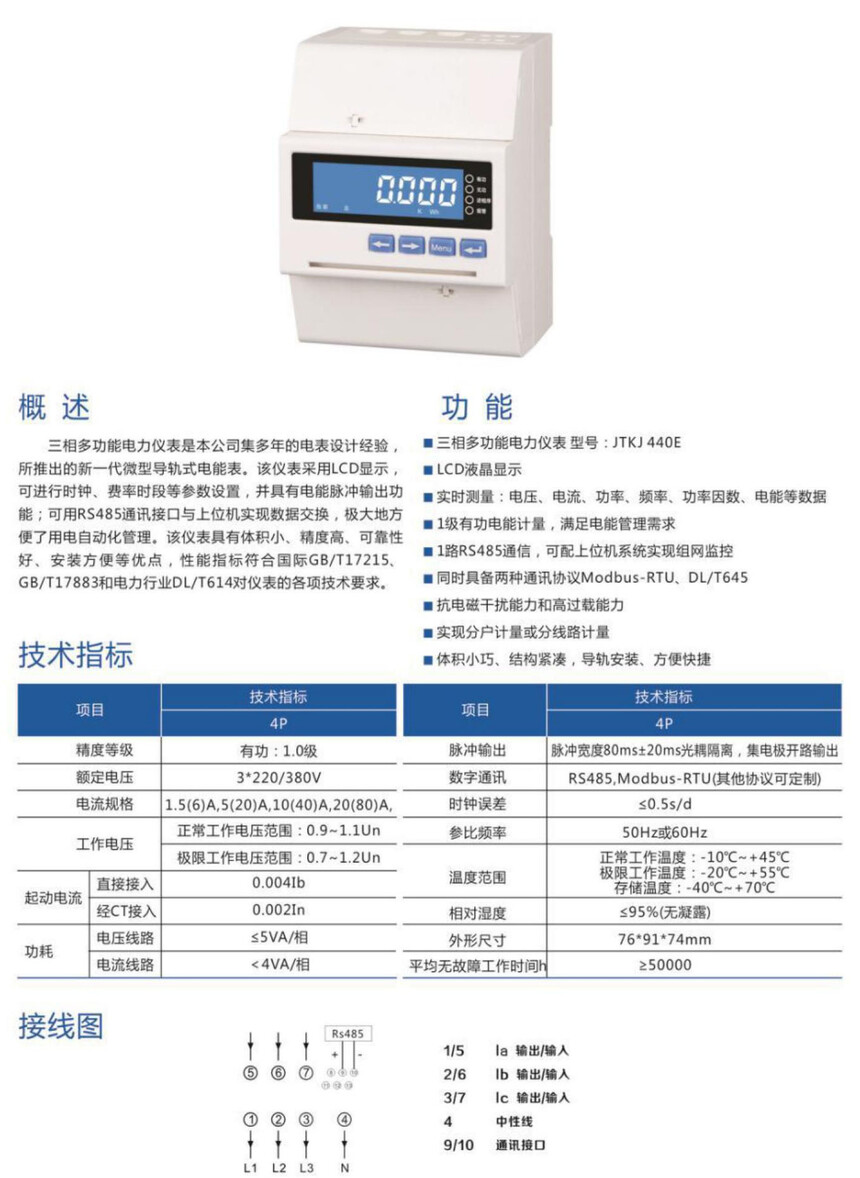 JTKJ30E三相多功能电力仪表(导轨式)