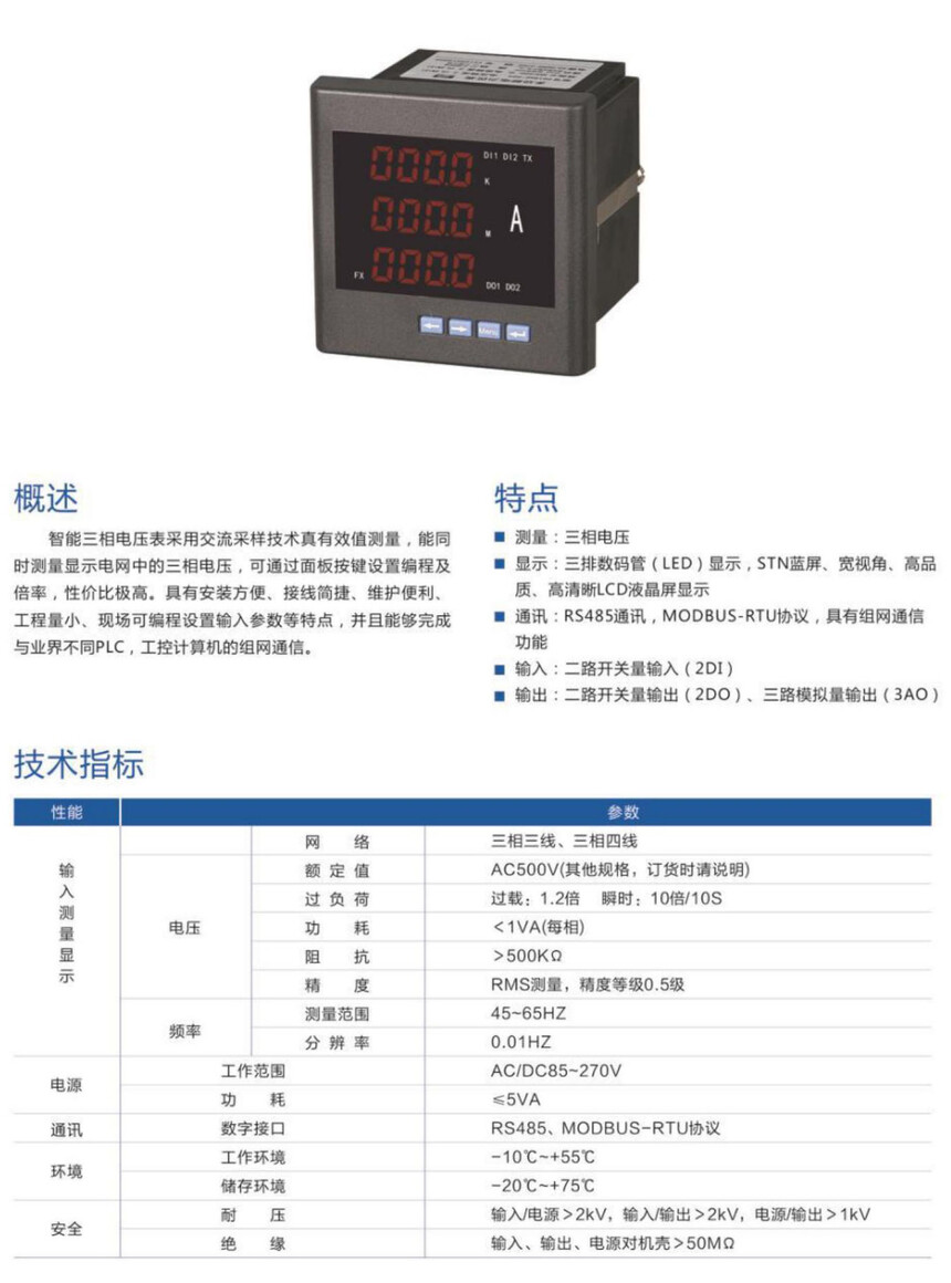 JTZ186U-2K4 智能三相电压表