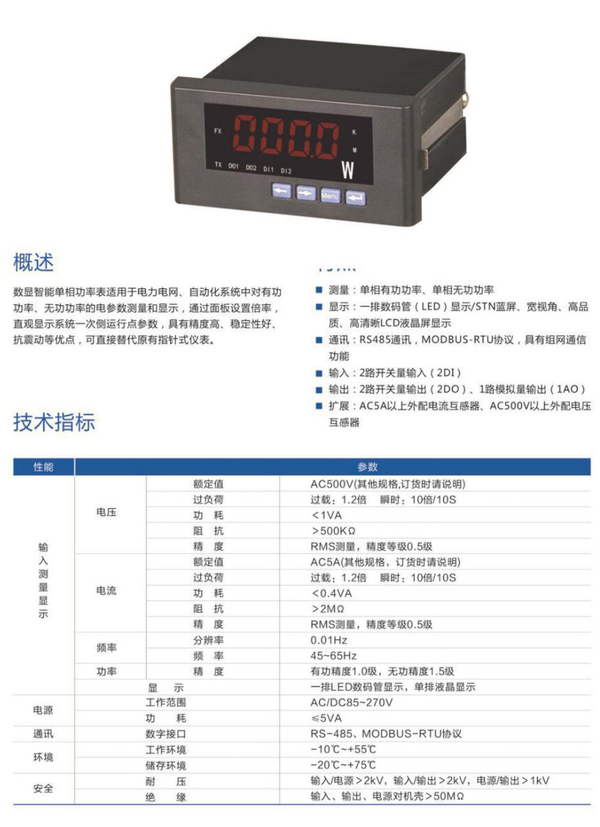 智能单相电力仪表