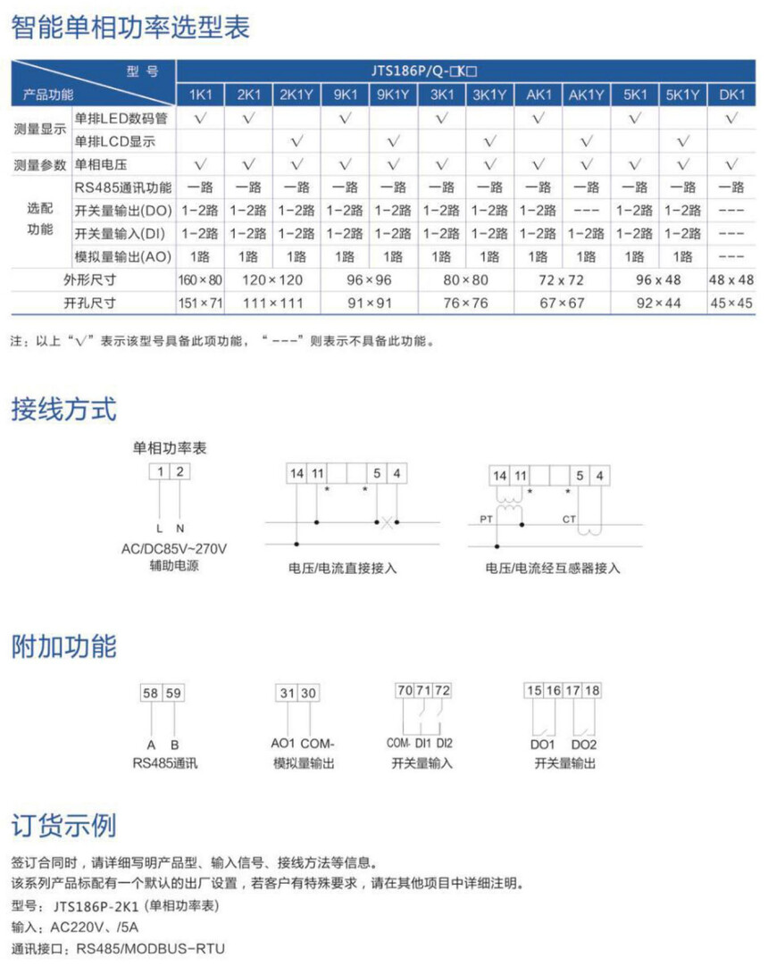 JTS186P-2K1 智能单相功率表