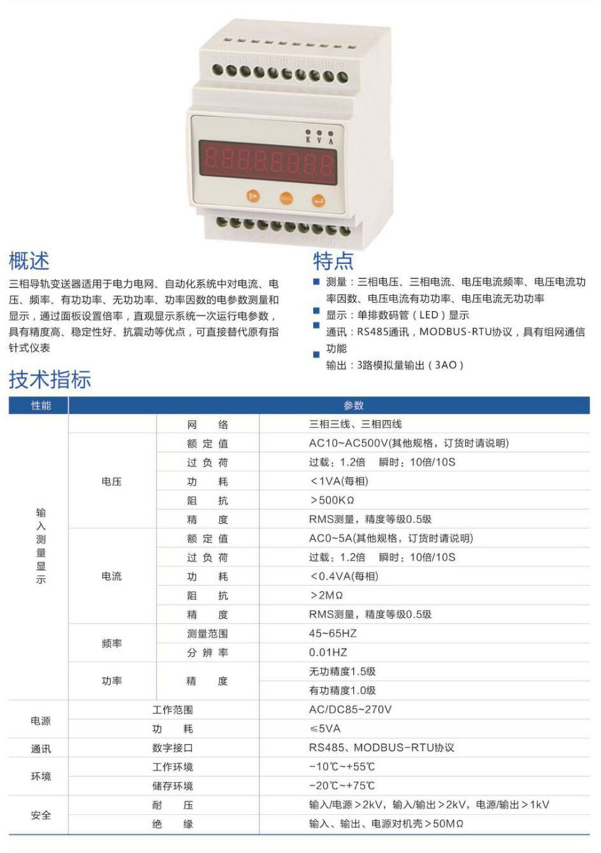 JJD1681-BS 三相导轨变送器